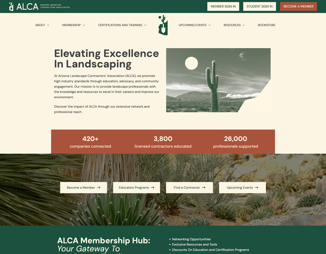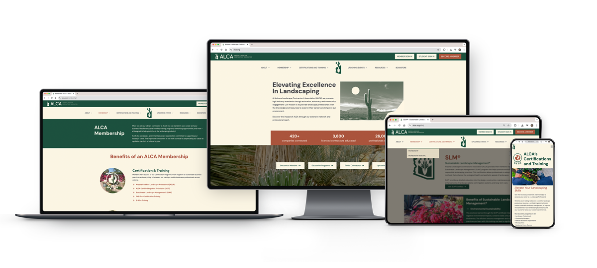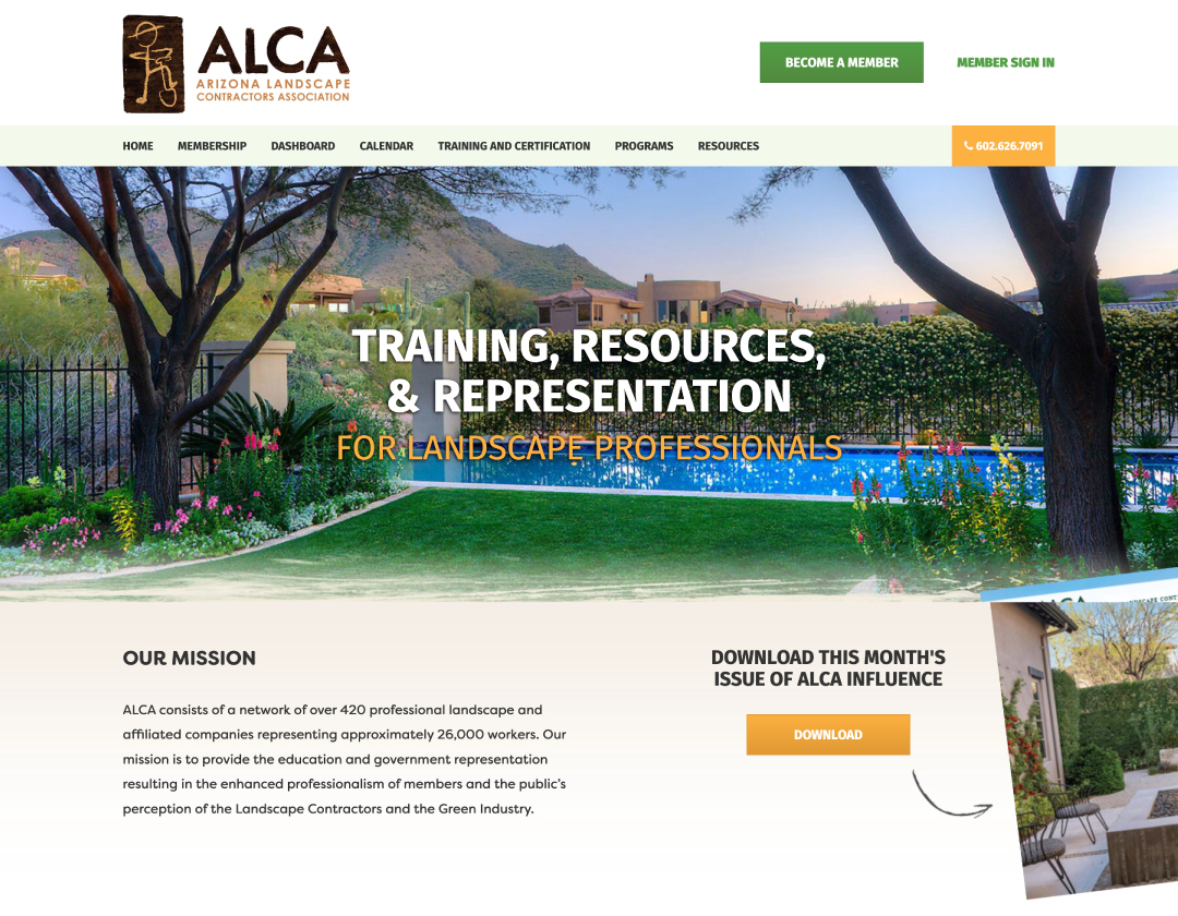 The Arizona Landscape Contractors’ Association (ALCA) represents over 420 professional landscape and affiliated companies. ALCA offers members resources, training programs, and networking opportunities.
