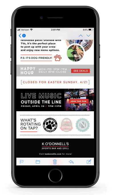 Responsive Email Marketing for K O'Donnell's Sports Bar & Grill