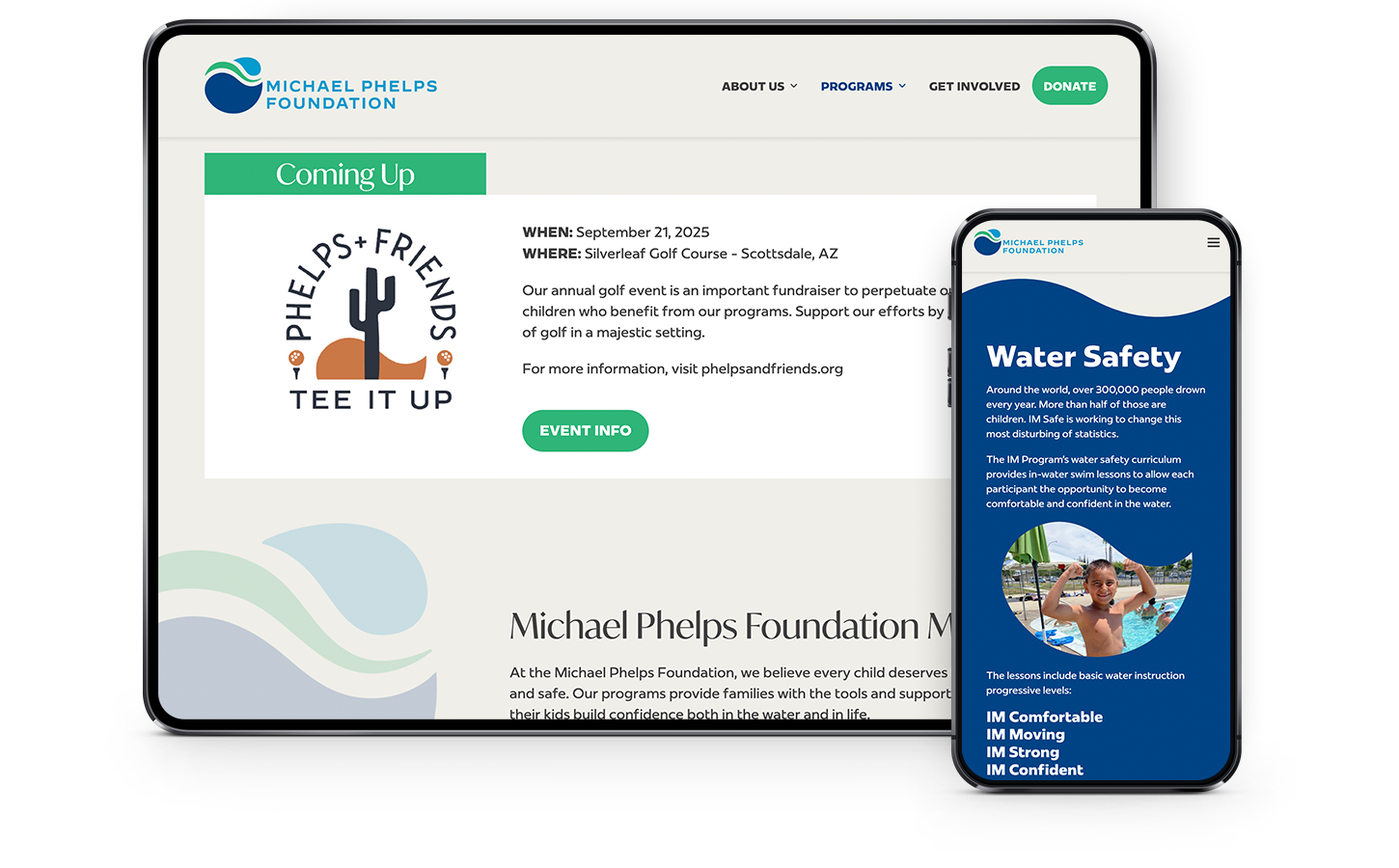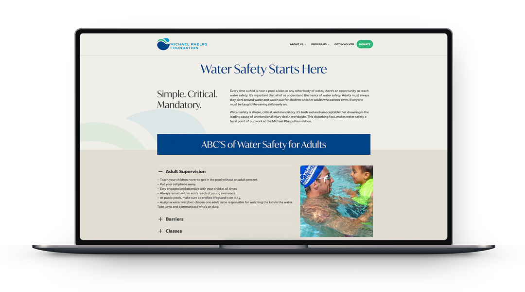 The Michael Phelps Foundation is determined to make the world a healthier and safer place by empowering kids through water safety and wellness programs. They provide a learn-to-swim, healthy living, and goal-setting curriculum that serves children and families worldwide.
